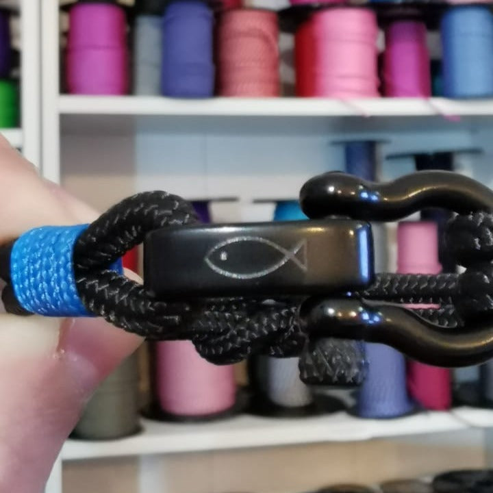 Jedes Armband dieser Kollektion wird aus hochwertigsten Materialien gefertigt: 4 mm starkes, robustes Marineseil und ein vakuumlackierter, schwarzer, hypoallergener 4-mm-Edelstahlverschluss. Der Verschluss ist um 0,5 cm verstellbar und passt sich so jedem Handgelenk optimal an.