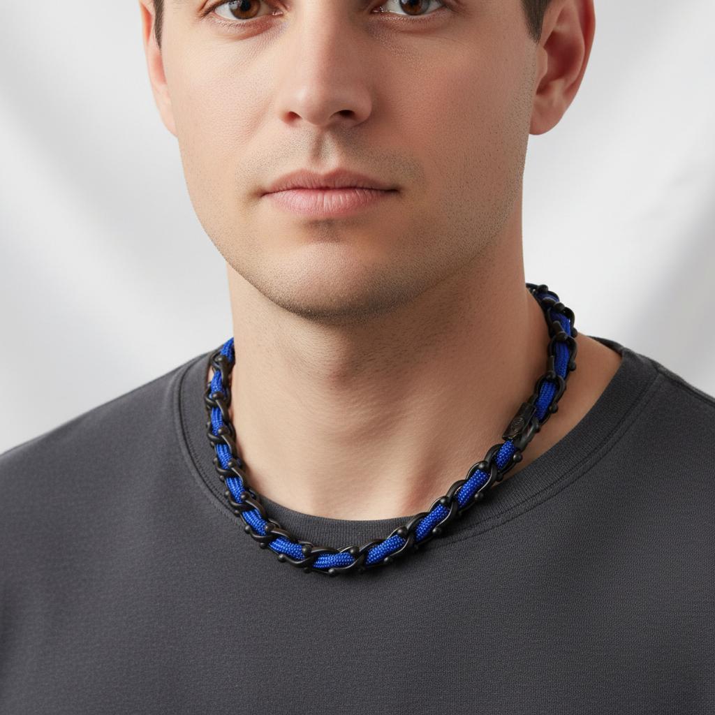 Aber das ist noch nicht alles! Wir bringen Eleganz auf ein ganz neues Niveau, indem wir Metall und Textil im Einklang mit den neuesten Schmucktrends verschmelzen. Die Armbänder und Halsketten von OCEAN MAXI zeigen einen verspielten Twist mit leuchtendem Paracord, das durch das gesamte Design gewebt ist und einen faszinierenden Kontrast erzeugt, der die Eleganz von Titanstahl ergänzt.