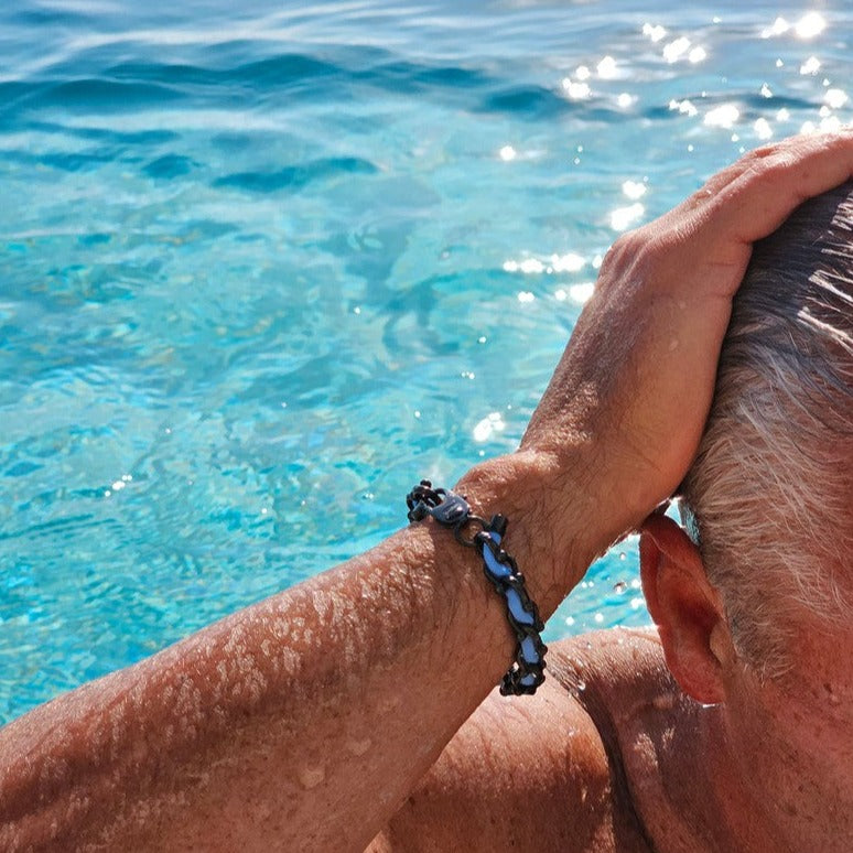 Break Time Schmuck ist für den Alltag gemacht: ob im Alltag, auf Reisen oder bei Abenteuern auf dem Meer. Unsere Armbänder werden in Handarbeit aus hochbeständigem Edelstahl oder Titanstahl und in der EU hergestelltem Segelseil oder originalem US-amerikanischem Paracord gefertigt. Dadurch sind sie bestens für den wiederholten Kontakt mit Wasser geeignet und benötigen keine aufwendige Pflege.