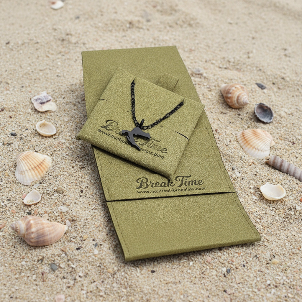 Alle Break Time-Schmuckstücke sind handgefertigt aus hochbeständigem Edelstahl oder Titanstahl und in der EU hergestellte Segelseile aus in den USA hergestelltem Original-Paracord. Daher sind sie äußerst widerstandsfähig gegen Abnutzung und wiederholten Kontakt mit Wasser erfordern viel Wartung.