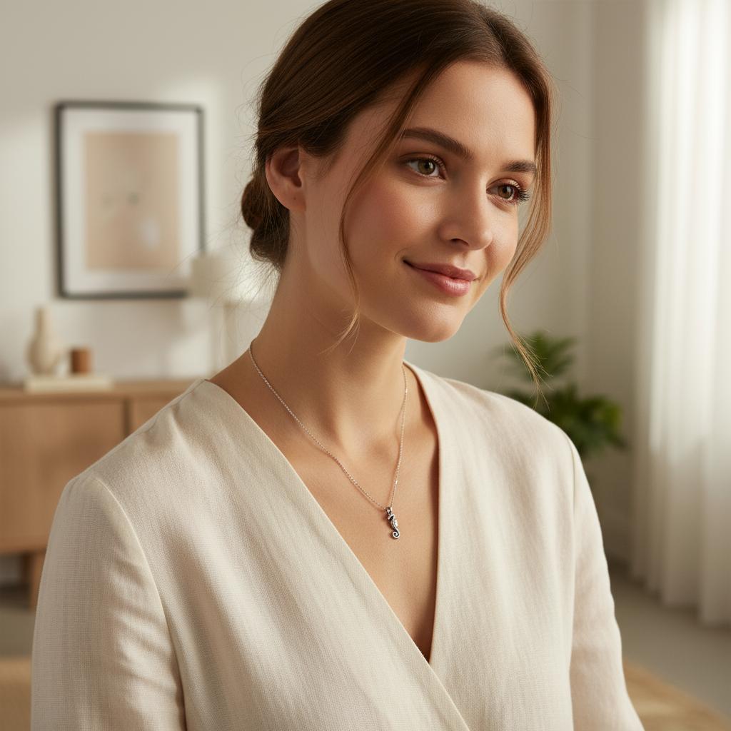 Wählen Sie die Halskette und die Anhängerfarbe (Silber, 18 Karat vergoldet, 18 Karat Roségold plattiert oder Schwarz). Die Halskette ist 50 cm lang.