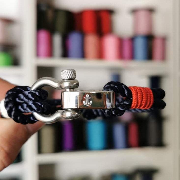 Ausgehend von der Form einer echten Bootsschäkel und der Verwendung echter Segeltaue haben wir mehrere originelle Kollektionen von Edelstahlarmbändern geschaffen. Wir haben drei verschiedene Schäkel- und Seilgrößen im Angebot: 3 mm, 4 mm und 5 mm.