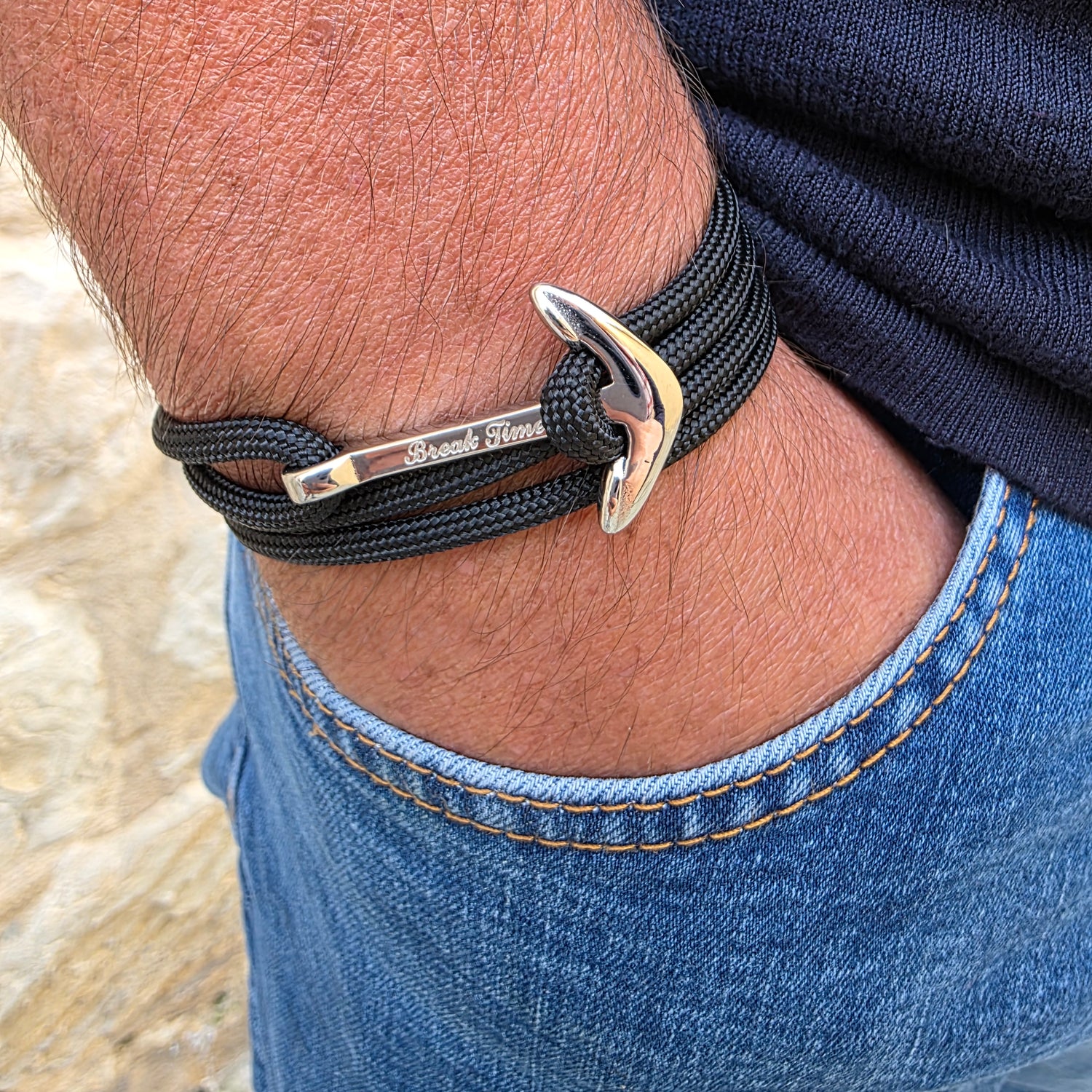 Break Time Schmuck ist für den Alltag gemacht: ob im Alltag, auf Reisen oder bei Abenteuern auf dem Meer. Unsere Armbänder werden in Handarbeit aus hochbeständigem Edelstahl oder Titanstahl und in der EU hergestelltem Segelseil oder originalem US-amerikanischem Paracord gefertigt. Dadurch sind sie bestens für den wiederholten Kontakt mit Wasser geeignet und benötigen keine aufwendige Pflege.
