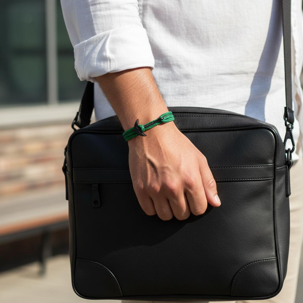 YACHT CREW mittelgroßes Ankerarmband grün